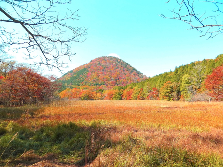 11月上旬。 塩原温泉郷の南側にある新湯富士 (あらゆふじ 1184m) です。