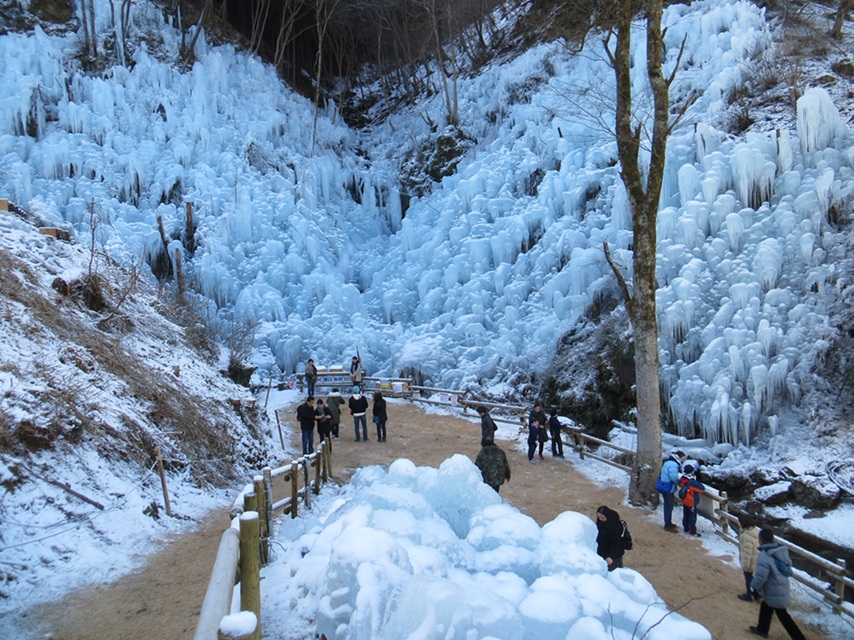 人工の氷柱だが、西武秩父線の芦ヶ久保駅から徒歩約10分、また駅前に道の駅もあり、アクセスが便利。