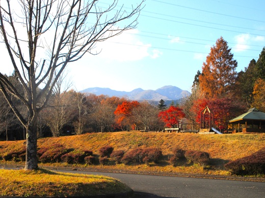 △ 高原山麓の県民の森は、まだまだ紅葉が楽しめました。 遠くの山が高原山。