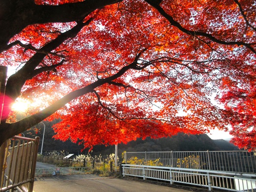 右は、県民の森の南側にある寺山ダム湖畔。 モミジが沢山あって、華やかでした。
