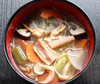 郷土料理のトップへ 北海道 【三平汁】アップ:2026.1.1 △ 塩鮭が好きで、冷凍で常備保存しています。 三平汁は、寒くなると、よく作って食べます。具材は、あるものを使って・・。 なお、「三平」は創案者の名前だそうな。