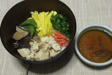 郷土料理のトップへ 九州 ◇鹿児島県 【鶏飯】 アップ:2026.1.1 △ 奄美島の郷土料理です。ご飯の上に鶏肉、錦糸卵、椎茸などをのせて、鶏がらのだし汁を かけて食べる料理。 昔、名瀬市内の居酒屋で食べたことがあります。美味しかったです。