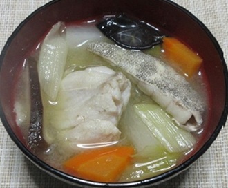 郷土料理のトップへ 東北 ◇青森県 【鱈のじゃっぽ汁】アップ:2026.1.1 △ 「じゃっぽ」とは、津軽の方言で「雑把 ざっぱ」、つまり捨てるもの。魚で言えば「アラ」。 鱈は、津軽では正月になると、欠かせない「年取り魚」で、「鱈正月」の言葉もあるそうです。 近くのスーパーでは、鱈のアラはなかったので、鱈の切り身を使いました。