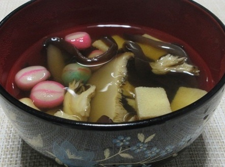 右は、乾物だけの吸い物。椎茸・マイタケ・キクラゲ、そして麩と高野豆腐。吸い物は、いつも酒を飲む前に楽しんでいます。