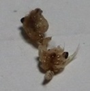 △ シラスをよく買います。 ささやかな楽しみが、コレ・・。 いろいろな稚魚や幼体が混入しています。