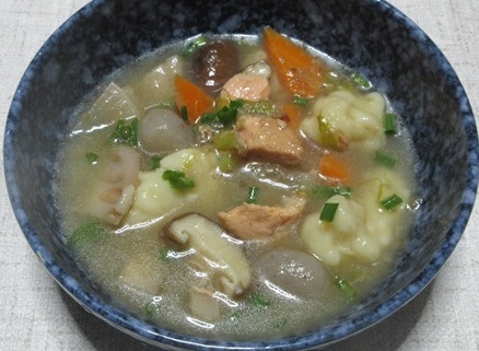 △ 寒くなると汁物や鍋物が食べたくなる・・ということで、すいとん入り三平汁。