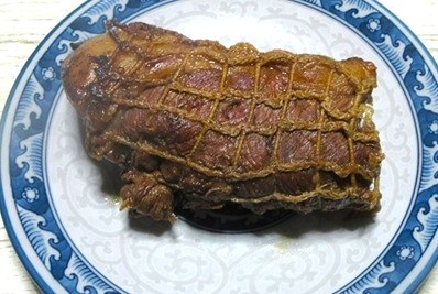 醤油ベースの好みの味付けで2時間ぐらい煮込んで、一晩、冷蔵庫で煮汁に浸しました。
