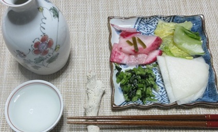 △ 頂き物の京野菜の漬物。 左の手前は壬生菜漬と、聖護院かぶらの千枚漬け。