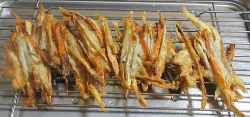 ゴボウのかき揚げは大好きだが、油の処理が面倒で、めったに作らない。